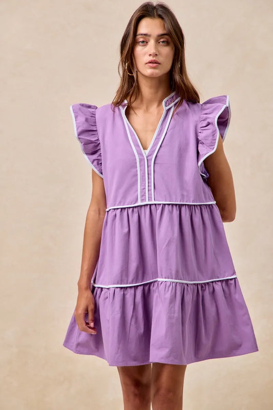 BiBi Gameday Theme Contrast Binding Ruffled Dress