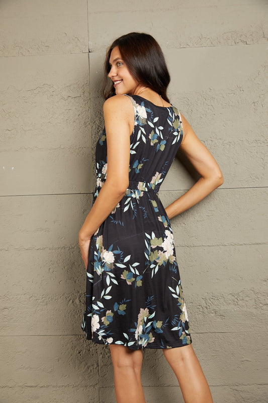 Double Take Printed Scoop Neck Sleeveless Buttoned Magic Dress with Pockets
