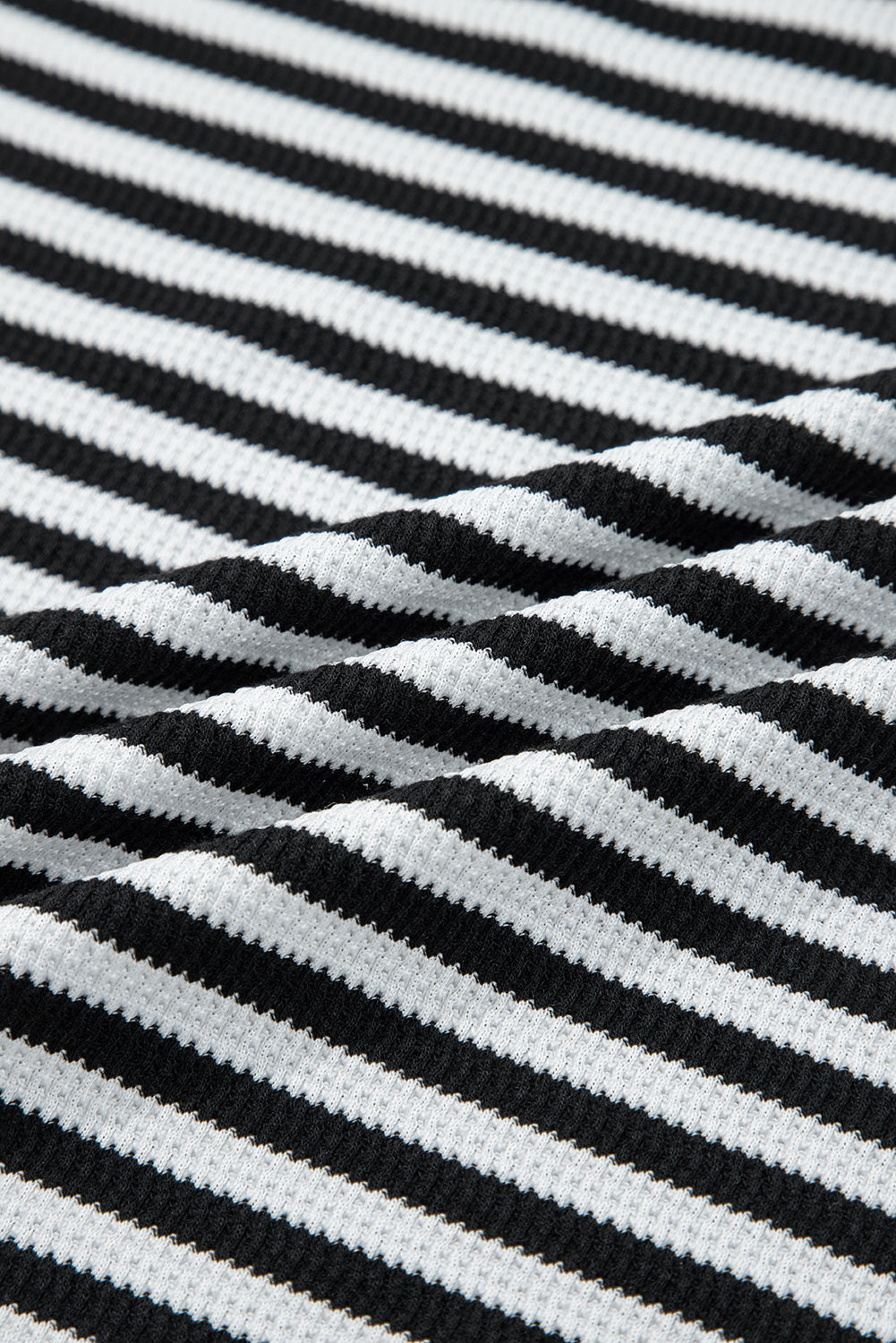 Black Stripe Thermal Knit Drop Shoulder Casual Top