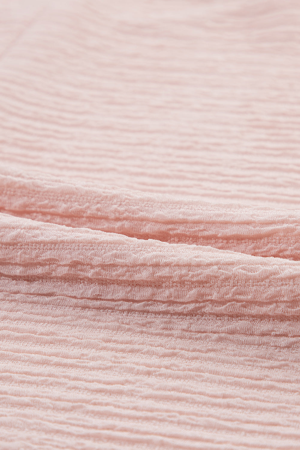 Light Pink Solid Textured Ruffled Short Sleeve Blouse